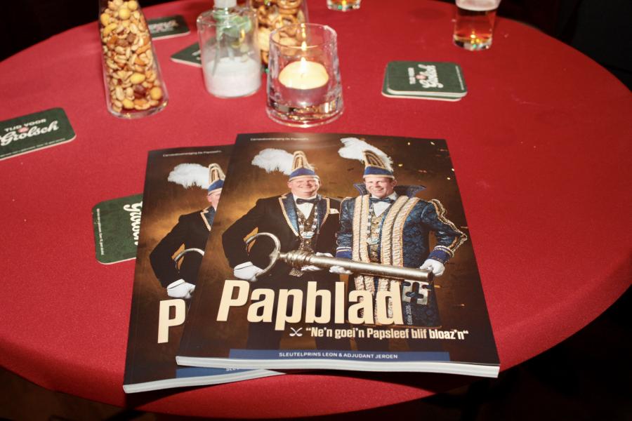 Natuurlijk was er ook dit seizoen een prachtige editie van het 'Papblad'. Een must voor de carnavalvierder, de Papsleef en voor een ieder die zich wil 'inlezen' in de carnavalsmaterie. Een knap stukje werk dat op feestelijke wijze werd gepresenteerd aan Prins en Adjudant !